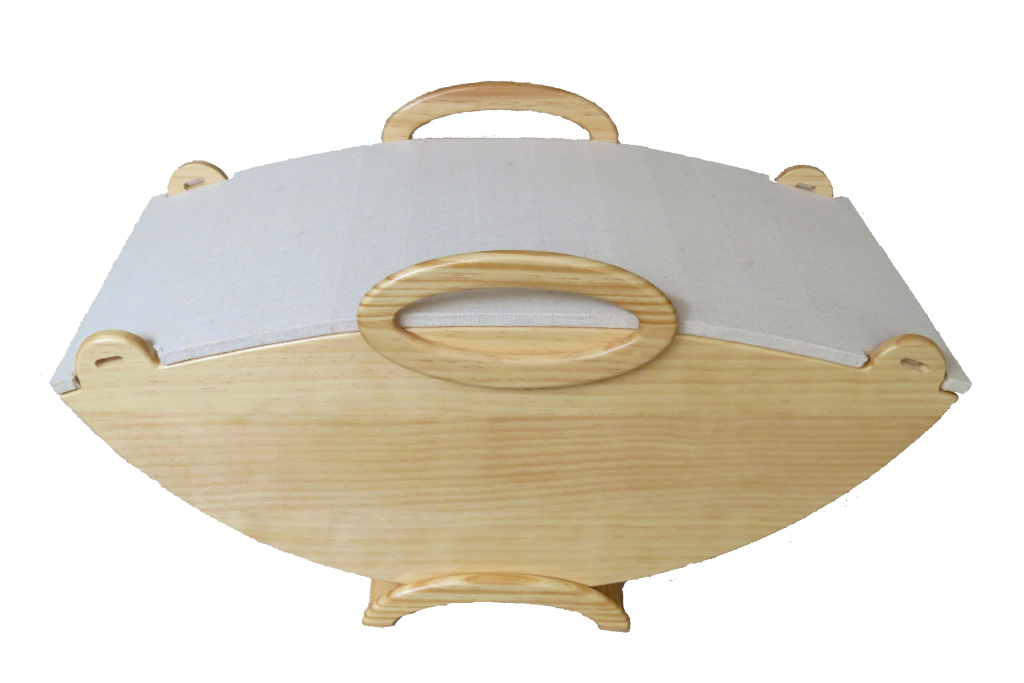 Made from sustainably grown pine and trimmed in wool fleece we have included a neutral coloured wrap. There is room inside for blankets and toys.
