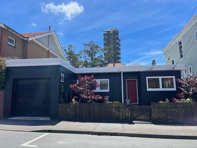 Palmer Street, in Aro Valley, is a cul-de-sac on the left, off the top of Willis Street (when heading North). It generally has one-hour free parking spaces available on the left hand side of the street. The house is on the right, a black bungalow with a brick-red door.
